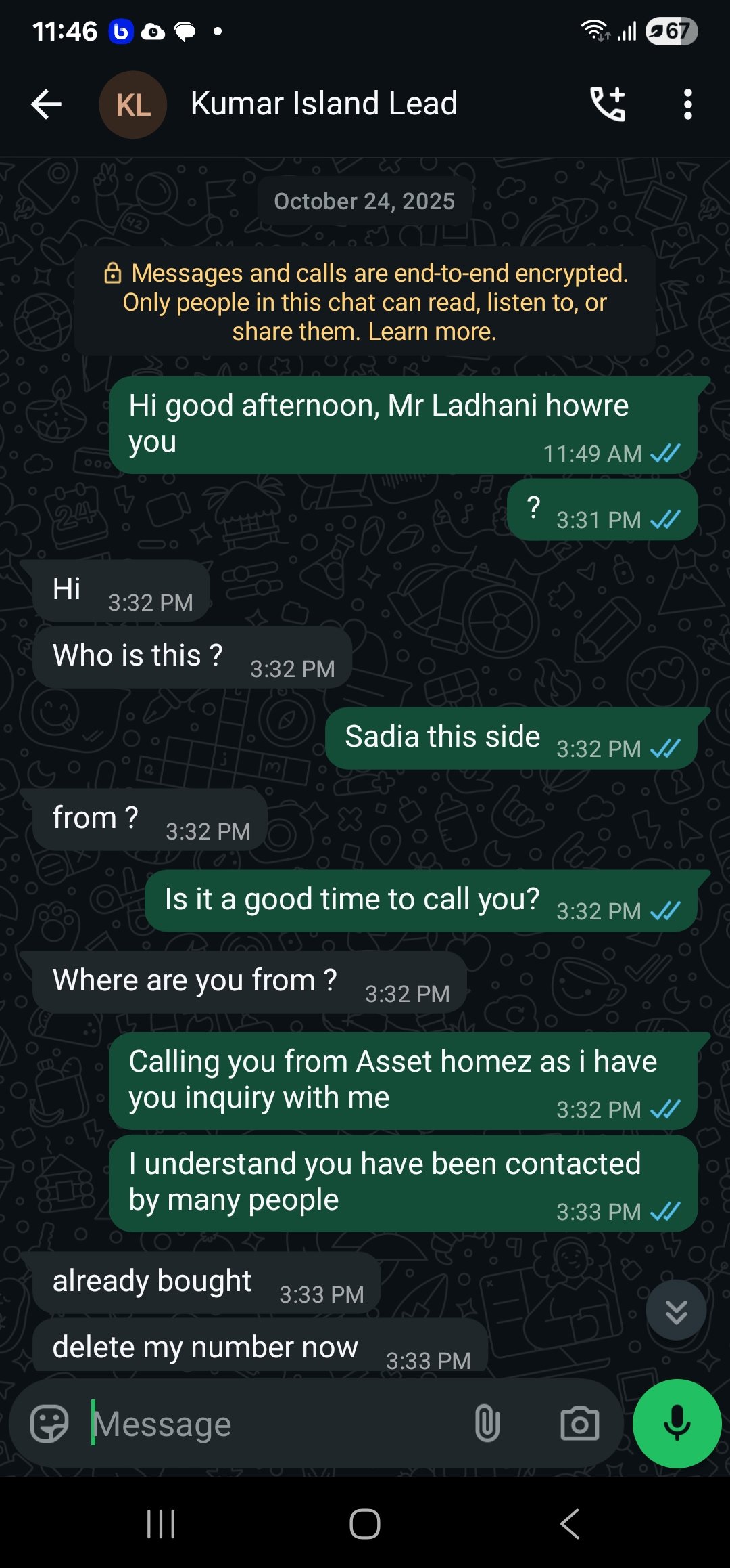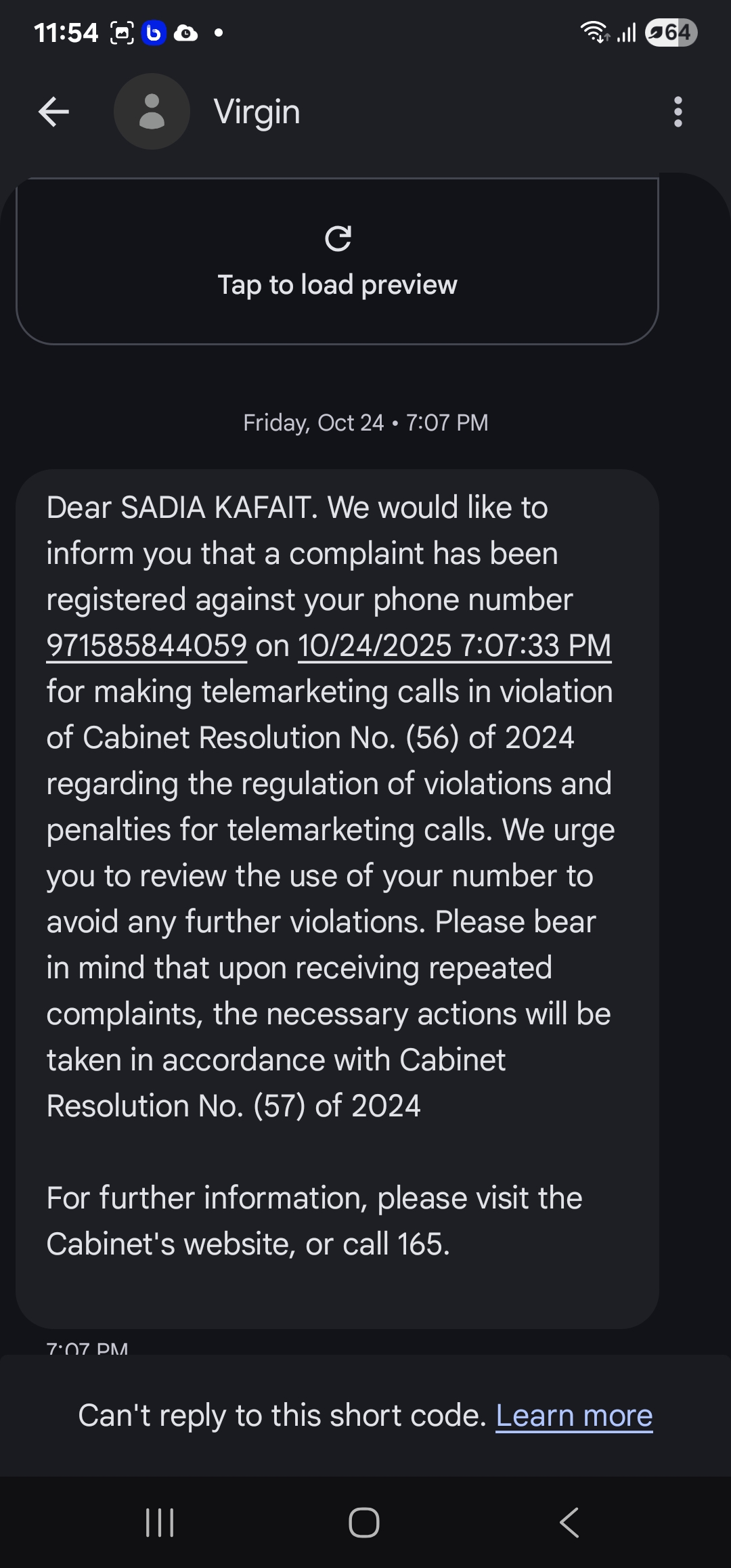 The person using +971 55 626 7177 this contact number contacted our marketing team and inquired for investment in damac island. As we are doing marketing and spending money over it. I contacted this person to know about his interest he first started misbehaving and then complaint against my number (0585844059) which im not using for cold call at all. I want this complaint to be removed under my number as it was not a colf calling it was pure marketing im adding all the proves in photos and i want to take action against this person who first put an inquiry for investment upon asking he file complaint against me