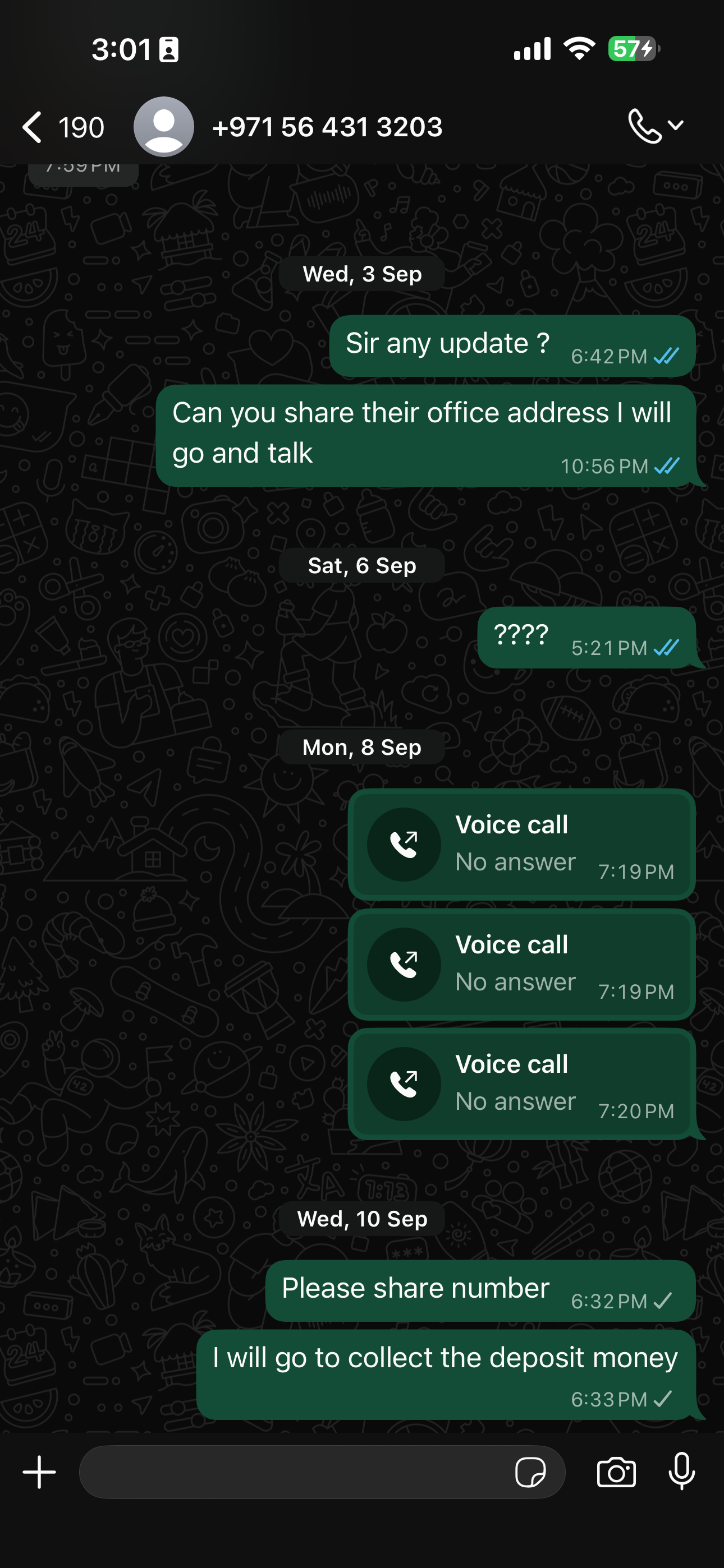 I tried contacting the company multiple times by phone and WhatsApp, but they are ignoring my messages and one of their staff members has even blocked me. I also sent them a formal final reminder, but they did not respond.