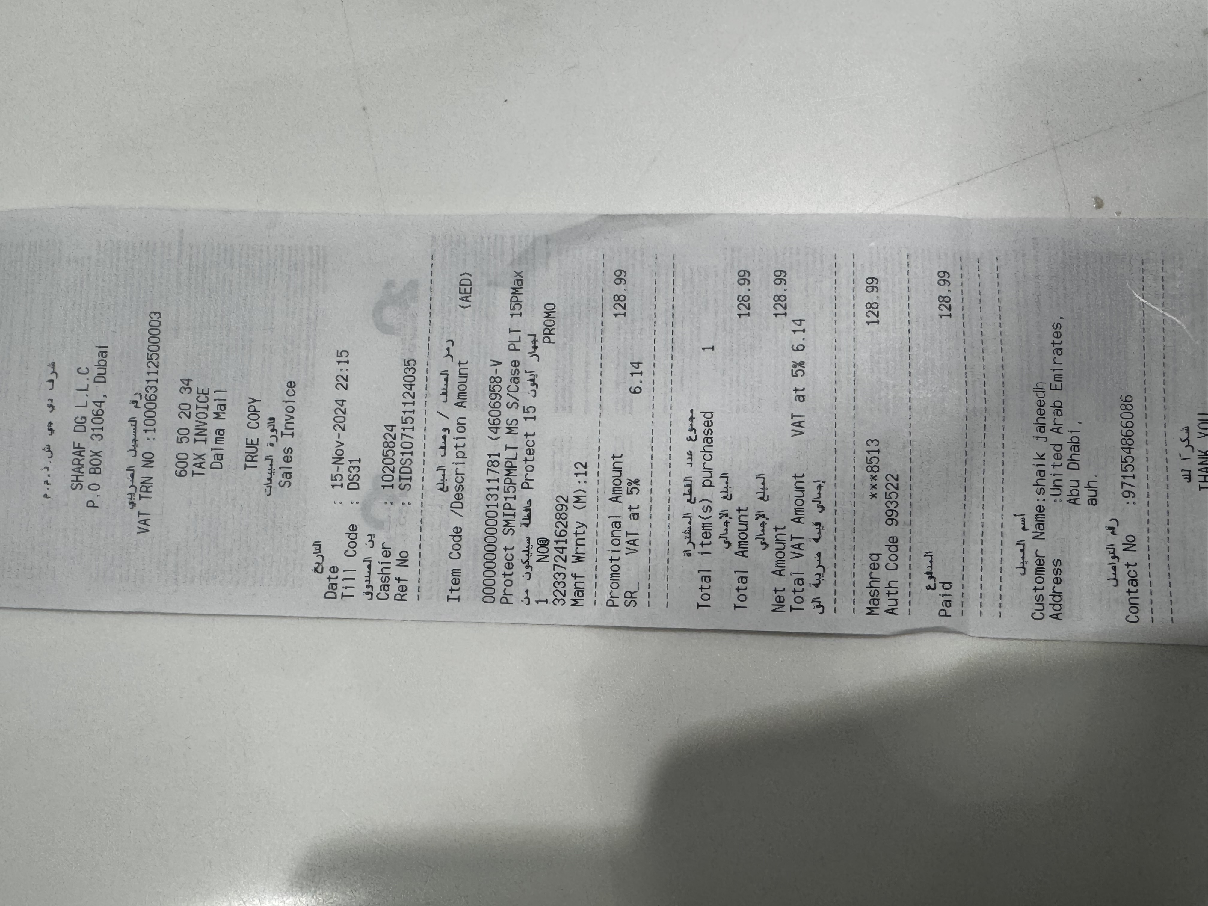 I have purchased a mobile back cover with 12months warranty and it got damaged in it’s 11th month, when i approach to Sharaf DG at Dalma mall, staff here are very rude and saying that it won’t cover under warranty even after showing physical bill slip.