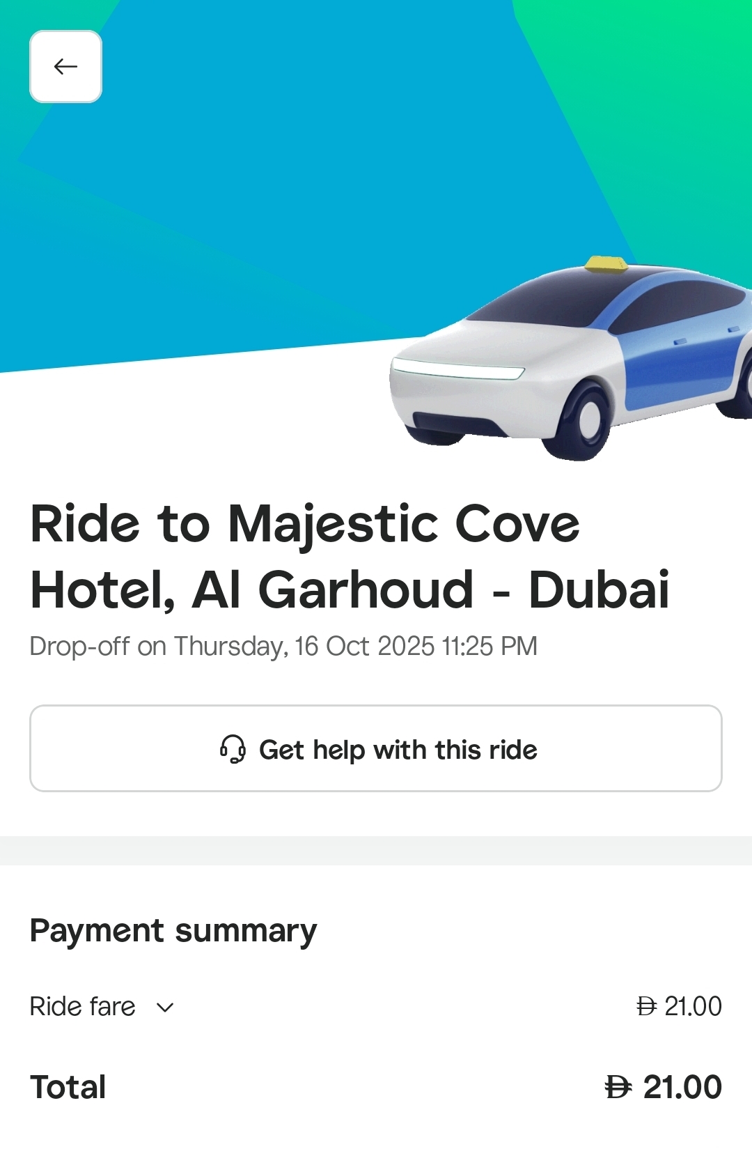 They detuct 100 aed and the trip cost 21 so i have 79 aed with them i didn't get it i call and send messages to them but as usual they didn't reply